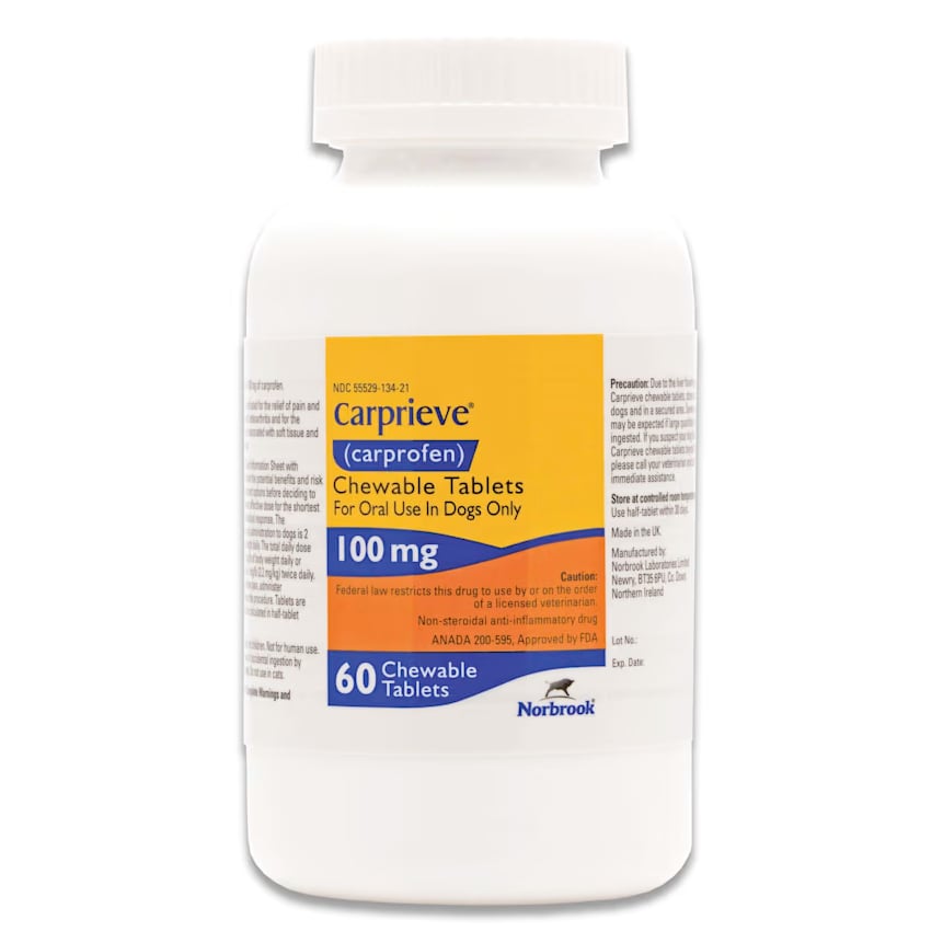 Carprieve (carprofen) Chewable Tablets for Dogs, 100 mg, 60 count